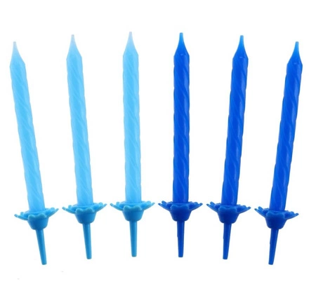 ŚWIECZKI URODZINOWE, NIEBIESKIE, 24 SZT. Kolor: niebieski, granatowy Ilość świeczek: 24 szt. Ilość podstawek: 12 szt. Producent: Godan S.A.