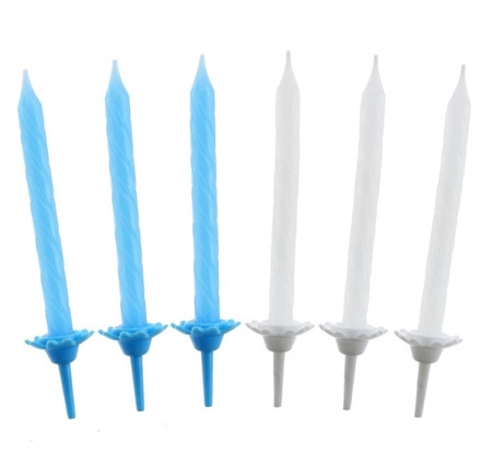 ŚWIECZKI URODZINOWE, NIEBIESKIE, 24 SZT. Kolor: biały, niebieski Ilość świeczek: 24 szt. Ilość podstawek: 12 szt. Producent: Godan S.A.