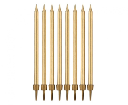 ŚWIECZKI URODZINOWE NA TORT, DŁUGIE, ZŁOTE, 8 SZT.