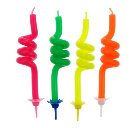 Świeczki kolorowe spirale na tort wraz z podstawkami.