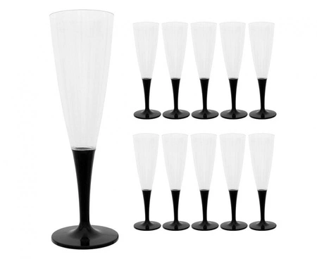 #ZI Kieliszek do szampana, wielokrotnego użytku, czarna nóżka, 10 szt.