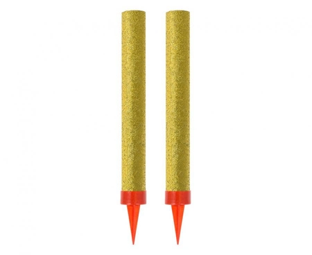 FONTANNY PARTY HOLOGRAFICZNE Ilość: 2 sztuki Wysokość: 12 cm Czas palenia ok. 40 sekund Kolor fontanny: złoty zawartość prochu: 4,5g/ 1 szt.