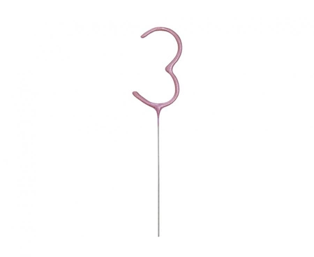 ZIMNE OGNIE CYFRA 3, RÓŻOWA Długość całkowita: 17 cm Wzór: cyfra 3 Kolor: różowy Ilość sztuk w opakowaniu: 1 szt. Producent: Unique