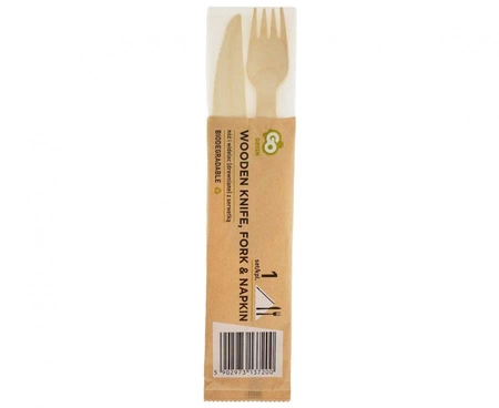 #ZSE Kolekcja Eko - nóż i widelec (drewniane) z serwetką, 1 kpl. KK