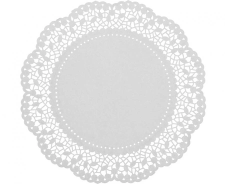 SERWETKA DEKORACYJNA Średnica: 36 cm Ilość sztuk w opakowaniu: 12 Materiał: papier Kolor: biały