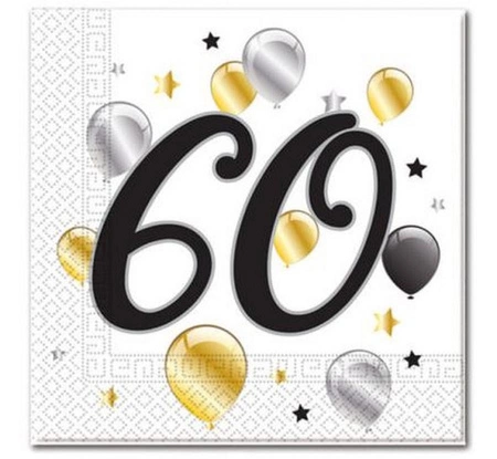 SERWETKI PAPIEROWE 60 URODZINY, BALLOONS