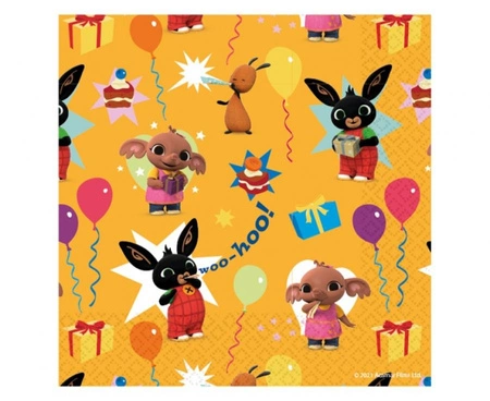 SERWETKI PAPIEROWE BING Wymiary serwetek: 33 x 33 cm Kolor: Pomarańczowy Nadruk: Bing Materiał: Papier Ilość sztuk w opakowaniu: 16