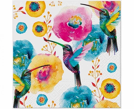 SERWETKI PAPIEROWE KOLIBER Wymiary: 33 x 33 cm Wzór: Koliber Kolor: różnokolorowy Materiał: papier Ilość sztuk w opakowaniu: 20 szt. Producent: Paw