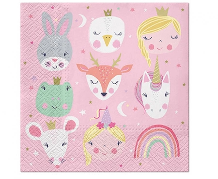 SERWETKI PAPIEROWE Wymiary serwetek: 33 x 33 cm Kolor: Różowy Nadruk: Zwierzątka Materiał: papier Ilość sztuk w opakowaniu: 20