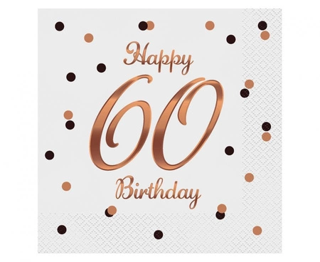 #ZSE_GD Serwetki B&C Happy 60 Birthday, białe, nadruk różowo-złoty, certyfikat FSC, 33x33 cm/ 20 szt.