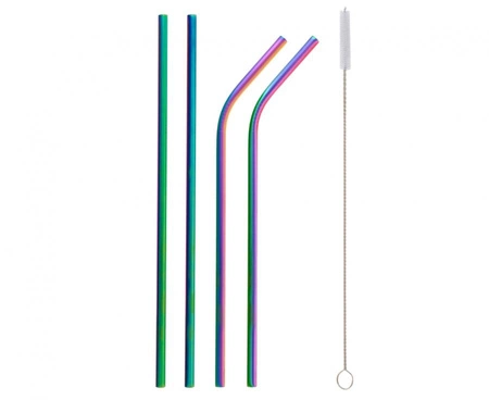 METALOWE SŁOMKI DO PICIA TĘCZOWE + SZCZOTECZKA