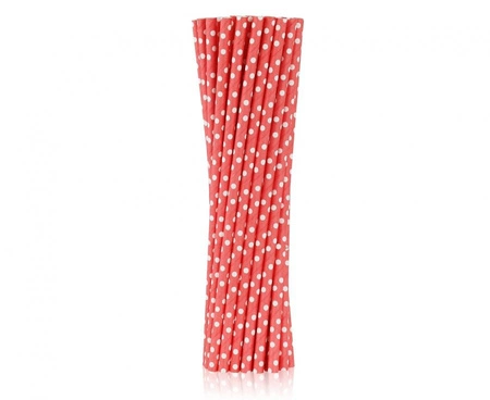 Słomki papierowe czerwone w białe groszki, 6x197 mm / 250 szt.