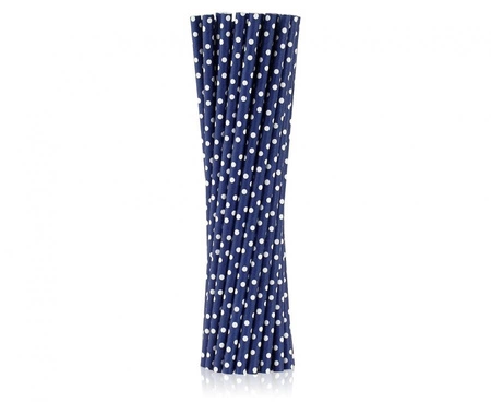 Słomki papierowe granatowe w białe groszki, 6x197 mm / 250 szt.