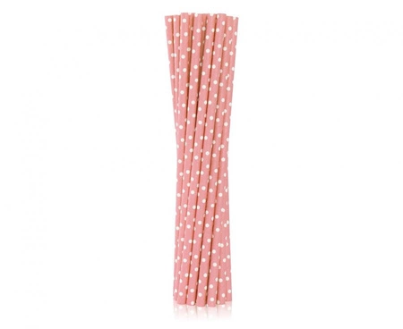 #ZSŁ Rurki (słomki) pap. jasnoróżowe w białe groszki, 6x197mm / 12 szt. KK