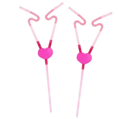 Zestaw składa się z 2 różowych słomek z serduszkami.
