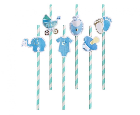 PAPIEROWE SŁOMKI DO PICIA Z MEDALIONAMI NA ROCZEK CHŁOPCA LUB BABY SHOWER