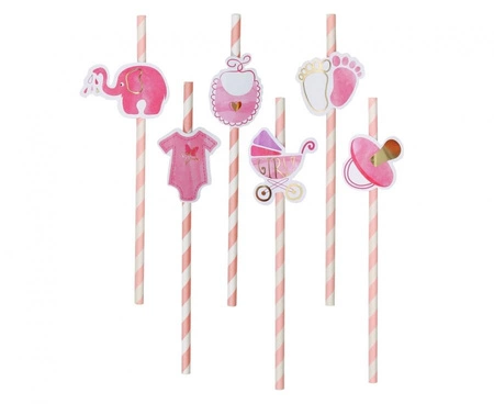 PAPIEROWE SŁOMKI DO PICIA Z MEDALIONAMI NA ROCZEK DZIEWCZYNKI LUB BABY SHOWER