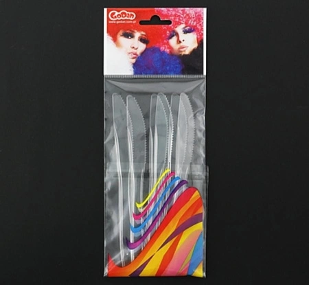 "PREMIUM - 6 NOZY" transparentne. Zestaw zawiera - 6 szt. Długość- 18 cm Noże plastikowe transparentne.