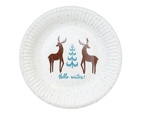 #ZTA_GD Talerzyki papierowe Hello Winter, białe, certyfikat FSC, 18 cm/ 6 szt.
