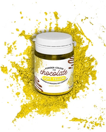 - Barwnik do mas tłustych i czekolady w proszku ŻÓŁTY JASNY Food Colours to intensywny pigment idealny do barwienia czekolady, pralin, masła kakaowego i kremów. Olejorozpuszczalny, wydajny i łatwy w użyciu, nadaje wypiekom piękny, równomierny żółty kolor.