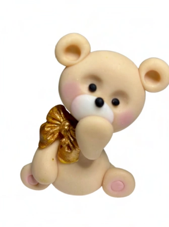 - Figurka cukrowa MIŚ ZE ZŁOTĄ KOKARDKĄ to elegancka dekoracja na tort, idealna na chrzest, roczek czy baby shower. Wykonana z jadalnej masy cukrowej, zachwyca precyzją i urokiem.