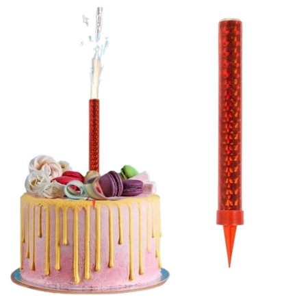 Fontanna tortowa holograficzna 12 cm, Czerwona