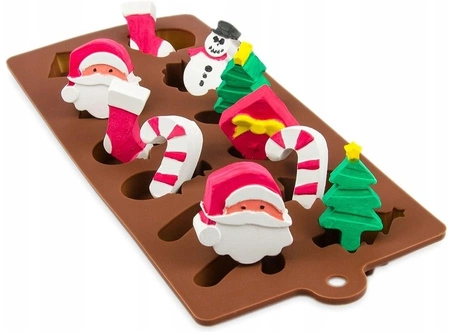 Forma silikonowa świąteczna BAŁWANEK, MIKOŁAJ, CHOINKI, LASKI CUKROWE – do czekoladek, pralin i dekoracji, 21×10 cm