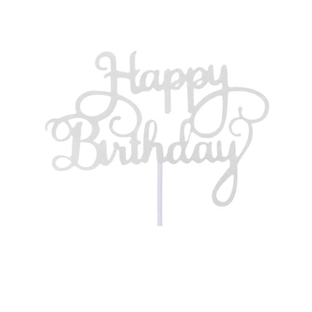 Papierowy topper na tort HAPPY BIRTHDAY SREBRNY WZ.II