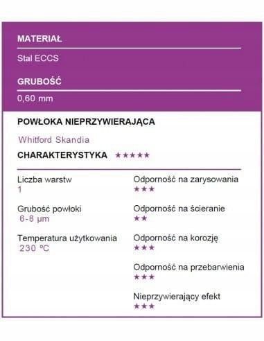 Formy wykonane ze stali ECCS o grubości 0,60mm z powłoką nieprzywierającą Whitford Skandia.