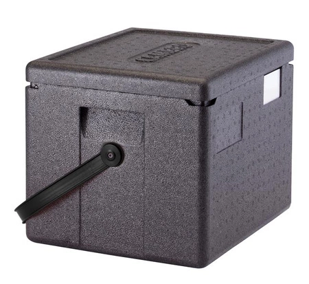 - Termoizolacyjny box z dopasowaną pokrywką szczególnie przydatny w gastronomii i cateringu, gdzie wymagana jest duża odporność na uszkodzenia mechaniczne i utrzymanie stabilnej temperatury wewnątrz pojemnika