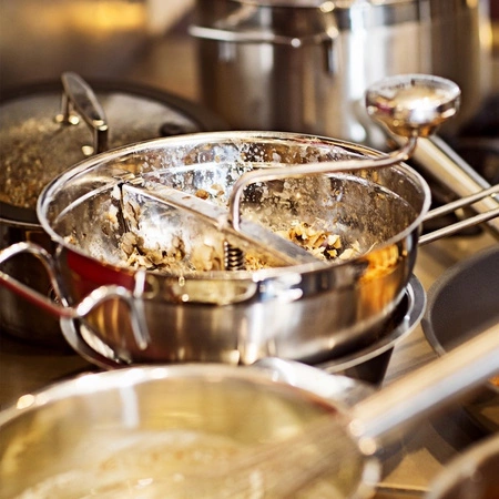 Przecierak o solidnej konstrukcji ze stali nierdzewnej został zaprojektowany tak, aby sprostać wymaganiom stawianym przez mielenie i przecieranie