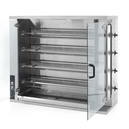 - 4 obrotowe rożna, każde na 4-5 kurczaków o maksymalnej średnicy korpusu 200 mm