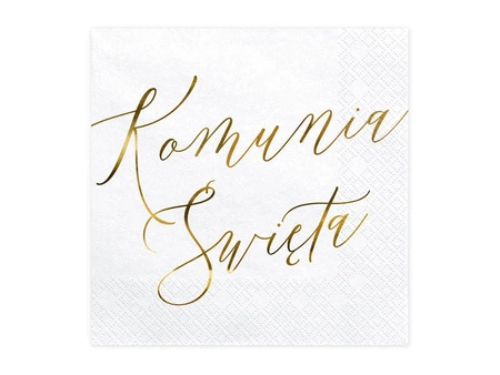 Serwetki papierowe w kolorze białym ze złotym metalizowanym napisem Komunia Święta