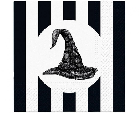 Serwetki papierowe PAW Halloween, biało-czarne, kapelusz 33x33 cm, 20 szt.