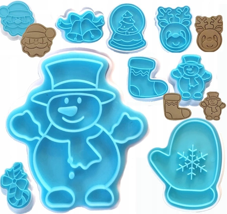 Świąteczne foremki z tłoczkiem do ciasteczek i pierniczków 8 szt.