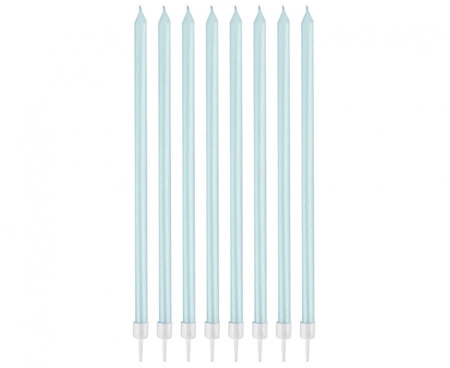 Świeczki perłowe jasnoniebieskie, 15.5x0.44 cm, 8 szt.