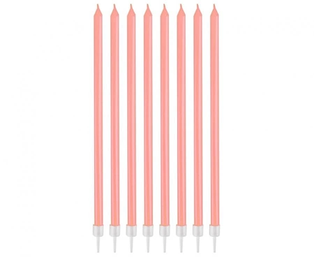 Świeczki perłowe jasnoróżowe, 15.5 x 0.44 cm, 8 szt.
