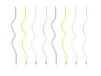 Świeczki urodzinowe zakręcone, mix, 14cm (1 op. / 8 szt.)