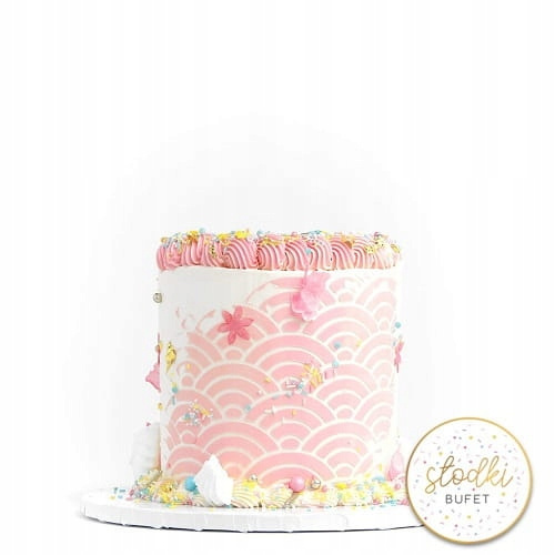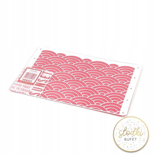 Uroczy wzór przypominający tęczę, choć inspiracją do jego stworzenia był zachód słońca. Kapitalnie sprawdzi się do dekorowania tortów dla dzieci lub na baby shower. Pastelowy kolor kremu do odbicia wzoru dodatkowo podkreśli jego urok.