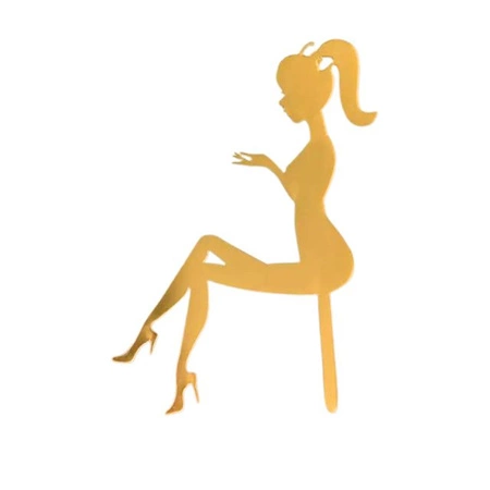 Topper na tort KOBIETA Z KUCYKIEM 16x12 cm ZŁOTY