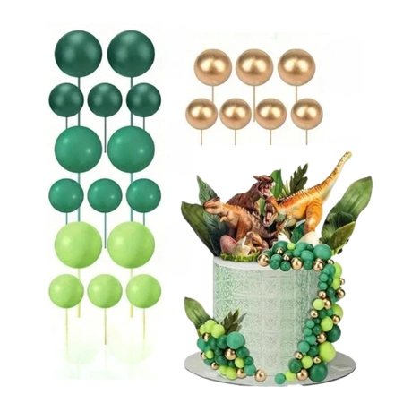 Toppery na tort kule na piku MIX ZIELONO ZŁOTY wz.V