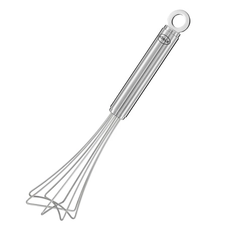 Trzepaczka o nietypowym kształcie idealnie nadaje się do mieszania półpłynnych ciast, takich jak ciasto naleśnikowe czy mączne.