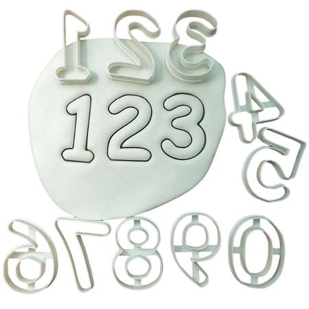 - Ilość: Zestaw składa się z 10 foremek od 0 do 9