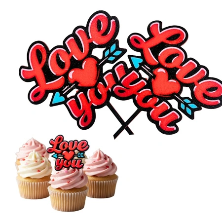 Zestaw 2 szt. mini topperków na muffinki 55x40 mm SERCE LOVE YOU WALENTYNKI WZ.I