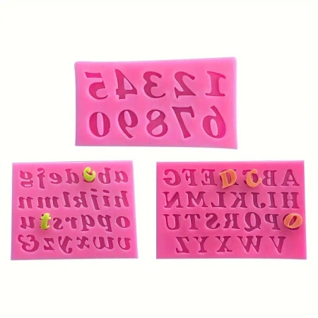 Zestaw 3 form silikonowych do dekoracji ALFABET LITERKI MAŁE + DUŻE + CYFRY | Foremki do masy cukrowej, czekolady, izomaltu