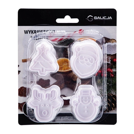 Zestaw 4 wykrawaczek ze stemplem: choinka, mikołaj, renifer, bałwan Galicja