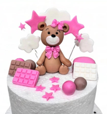 - Zestaw figurek cukrowych MIŚ, KOKARDKI, CHMURKI, TABLICZKI I KULECZKI to idealna dekoracja na tort na baby shower, chrzest czy roczek dla dziewczynki. Jadalne elementy zachwycają urokiem i precyzją.