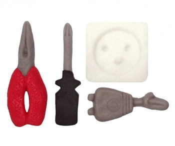 Dekoracje cukrowe na tort NARZĘDZIA - MŁOTEK, WIERTARKA, PIŁA ZIELONY