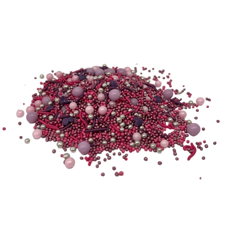 Tak zaprojektowana posypka nie tylko dekoruje, ale również nadaje głębi Twoim wypiekom, podkreślając ich wyjątkowy charakter. Dzięki harmonii intensywnych kolorów oraz matowych i metalicznych odcieni, Różowo-Fioletowy Mix doskonale komponuje się z kremami, czekoladą oraz masą cukrową.