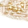 Mother of Pearl to posypka, która nada Twoim deserom wyjątkowego blasku. Subtelne, perłowe kuleczki doskonale komponują się z połyskującymi złotymi elementami, tworząc efekt biżuteryjnej dekoracji. To doskonały wybór dla cukierników, którzy chcą nadać swoim wypiekom wyjątkowy charakter i zachwycić gości stylowym wyglądem słodkiego stołu.